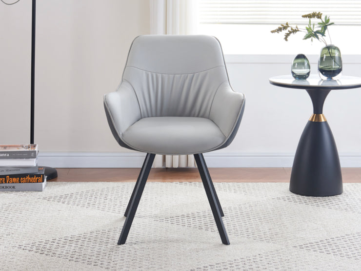Meet our Allez Two-Tone Swivel Chair, where modern design meets ultimate functionality! With its sleek grey two-tone finish and elegant contours, this chair is not just a statement piece but a versatile seating option for any space. The cushioned seat and armrests are expertly crafted for all-day comfort, while the 360-degree swivel feature adds flexibility for work or casual dining. Supported by minimalist black legs, it’s both sturdy and stylish. Perfect for adding a touch of sophistication to your dining area or home office, the Allez chair redefines comfort with a modern twist.