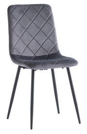 Our Ella chair is a curved, elegant and sultry. Exquisitively tailored in a stunning cross-stitch velvet fabric and finished with black powder- coated legs. An ideal complement to any contemporary kitcen or dining space.