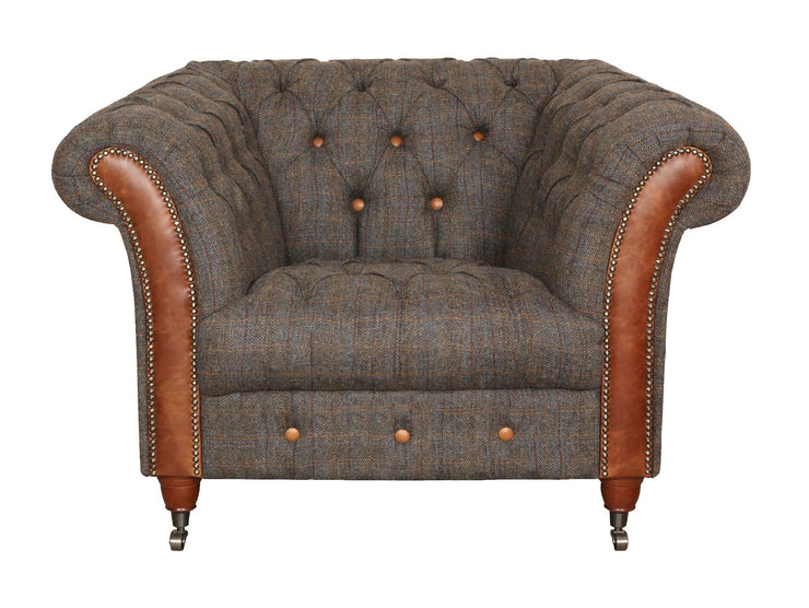 The Chester Club Chair in 'Moreland' Harris Tweed is a fastrack model meaning that it is available and ready to go right now, although this means losing the element of personalisation you will still get a piece of furniture that will stand out and shine in any room with the amazing design and quality finish you'd expect from Vintage Sofa Company.