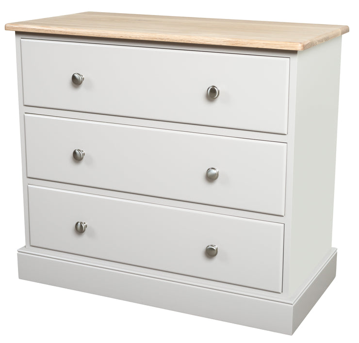 A collection of painted pine bedroom furniture with solid oak tops and knobs.