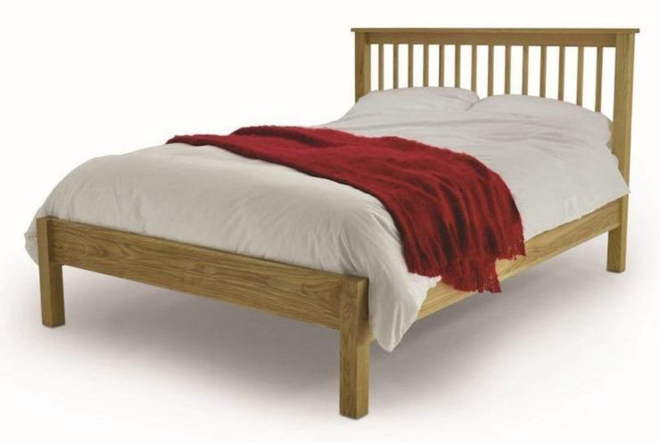 The Oak Slatted Bed Frame has a metal centre frame with sprung slats, no centre support legs. The bed at its’ heart a unique steel frame, but bolted to the inside of the solid oak side rails.