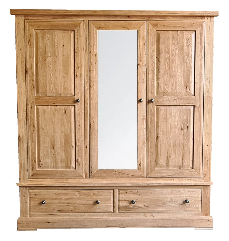 Wessex Oak Triple Wardrobe with 2 Drawers